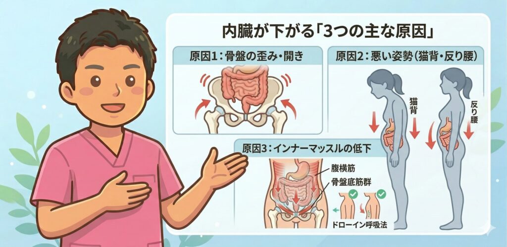 なぜ内臓の位置が下がるのか?3つの主な原因
